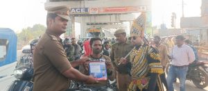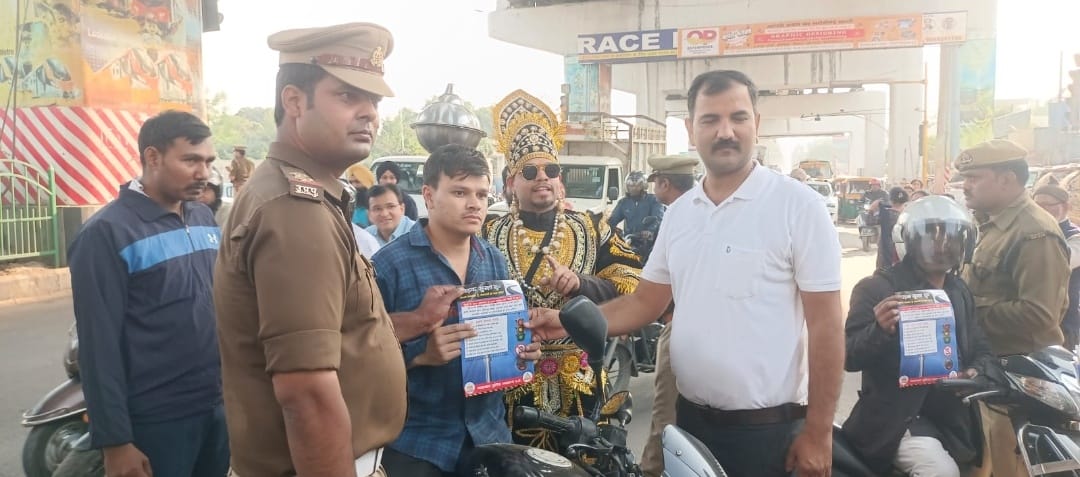 लखनऊ। राजधानी लखनऊ के कृष्णा नगर क्षेत्र में यातायात उपायुक्त लखनऊ के निर्देश पर चल रहे सुगम सुरक्षा यातायात जागरूकता अभियान के तहत शुक्रवार को शहीद पथ तिराहे पर लोगों को यातायात के प्रति जागरूक करने के लिए एक अनोखा अभियान चलाया गया।